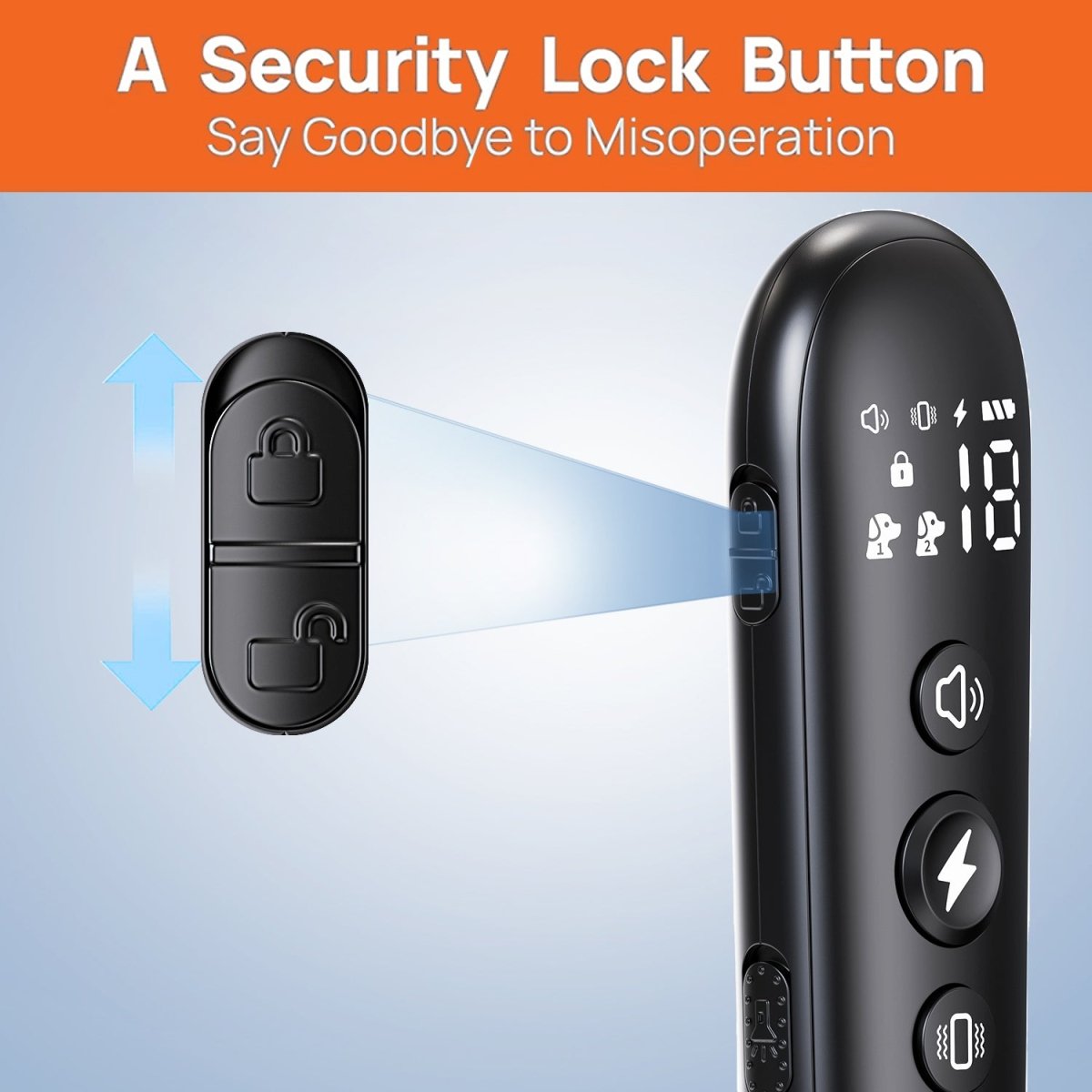 •Secure Lock and LED Anti-Lost Lights: The collar features a secure lock to prevent accidental operation. It also has LED anti-lost lights that allow you to easily locate your dog in the dark.